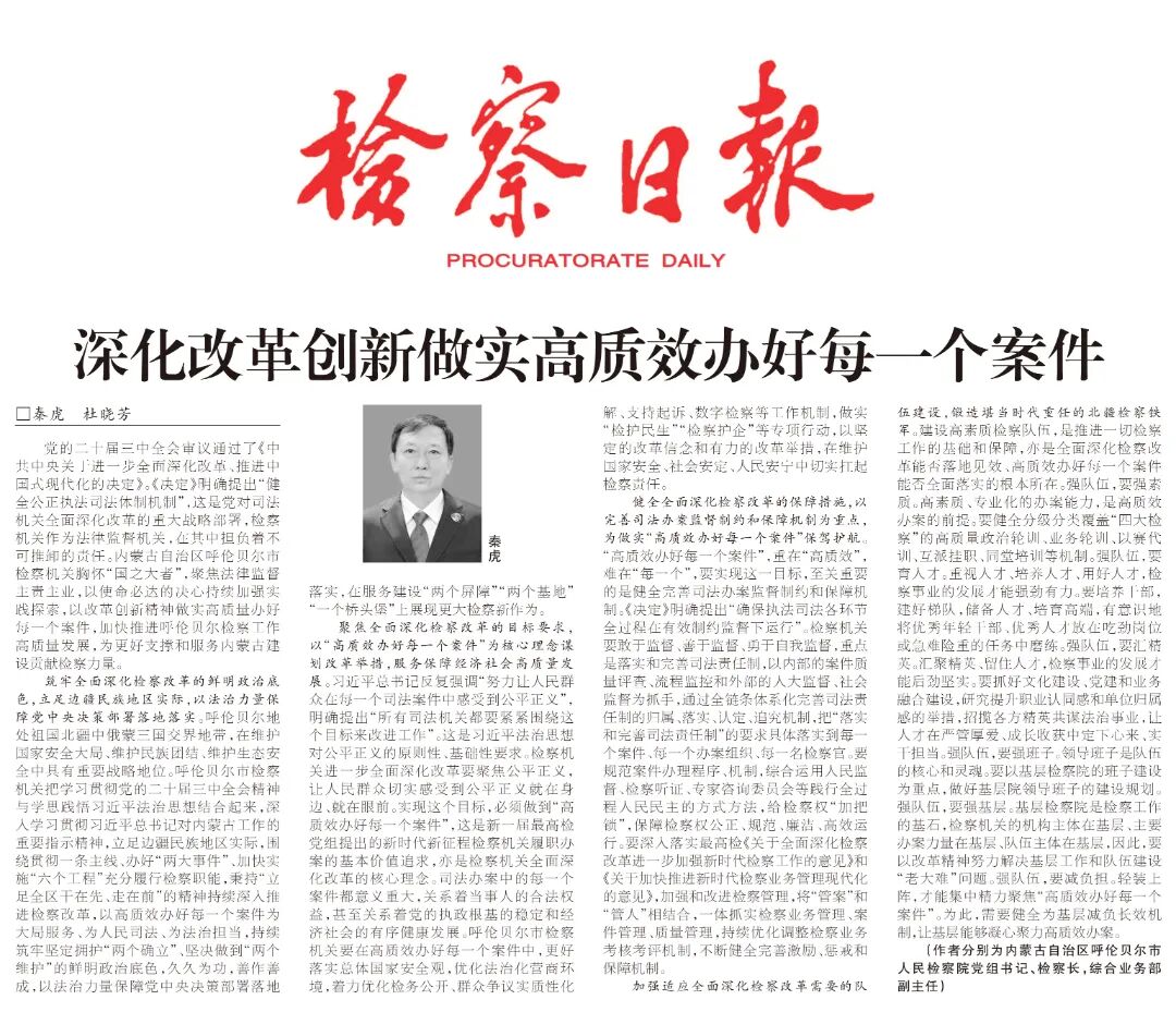 作者 | 呼伦贝尔市检察院党组书记、检察长 秦虎、综合业务部副主任 杜晓芳