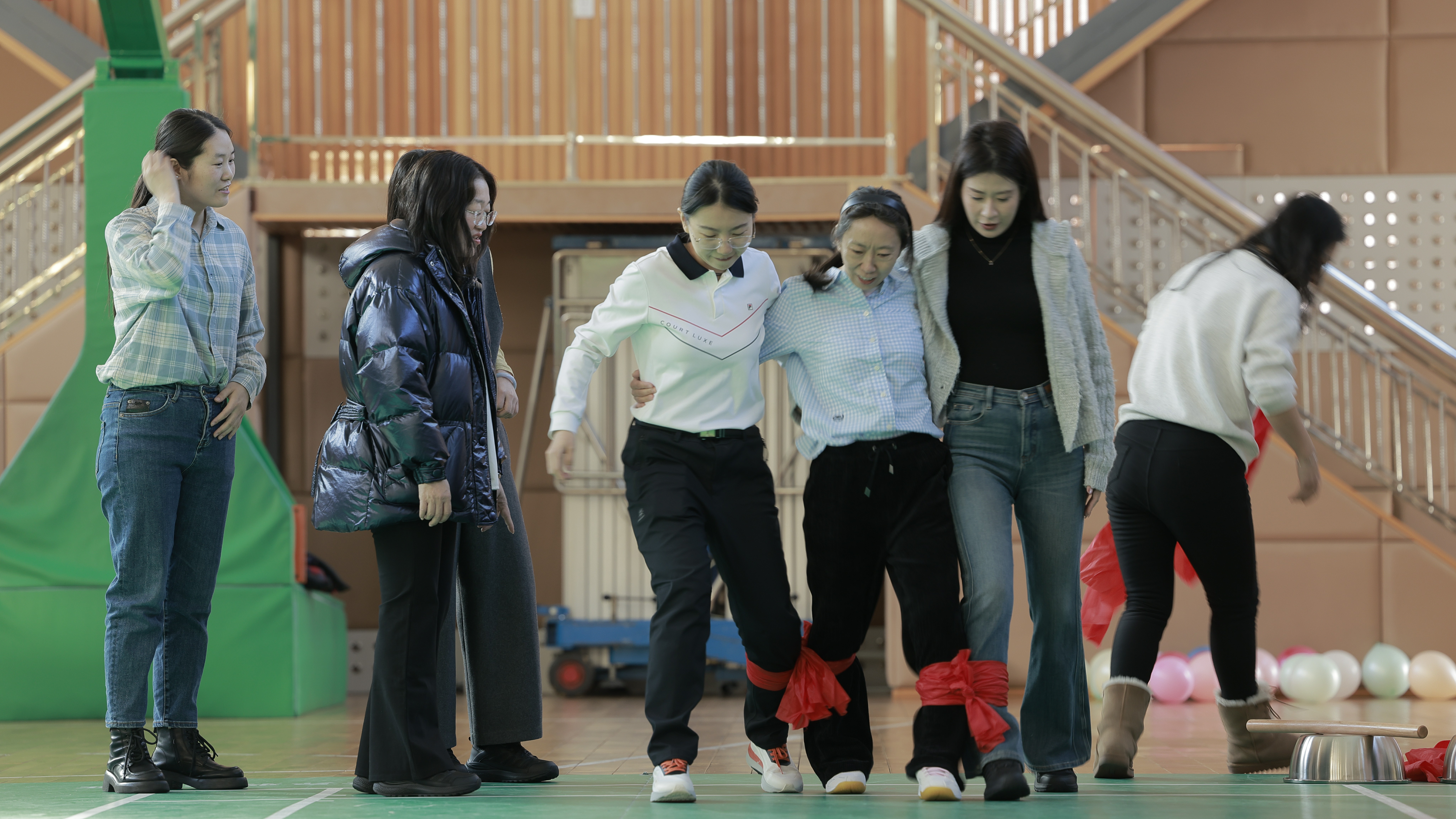 趣味拔河现场,绳绳聚力、步步同心。大家紧握长绳、脚步铿锵,心往一处想、劲往一处使,呐喊声与助威声此起彼伏,展现出凝心聚力、奋勇争先的磅礴力量,将检察队伍团结协作、攻坚克难的精神风貌展现得淋漓尽致。紧随其后的三人四足,是默契与配合的生动考验。大家并肩挽臂、步调一致,在口令与步伐的同频共振中稳步向前,步伐轻盈而坚定,默契无间、笑语盈盈,于携手同行中拉近心与心的距离,诠释同心同向、携手共进的团队情怀。