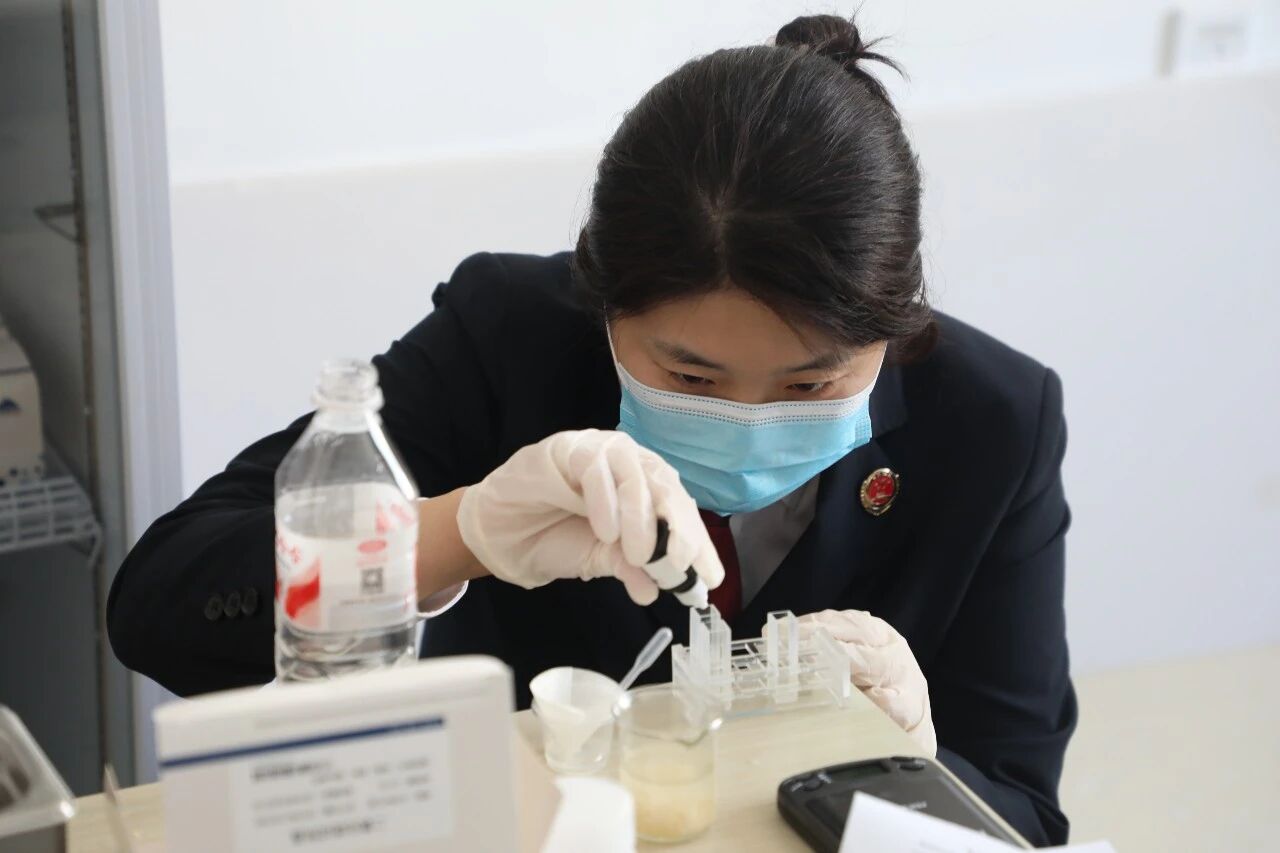 检测现场,检察人员严格按照操作规范,使用移液枪、超声波清洗机、公益诉讼勘查检测一体机等专业快速检测设备,对生鲜、熟食、腌渍蔬菜等食品样本进行精准取样,重点针对食品中可能存在的非法添加剂、农药残留等风险指标开展快速筛查。检测流程严谨规范,全程可追溯,确保检测结果真实可靠,为后续公益诉讼案件办理提供精准数据支撑。