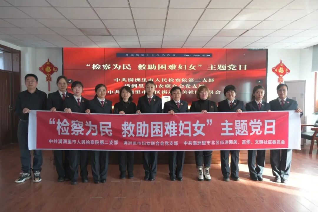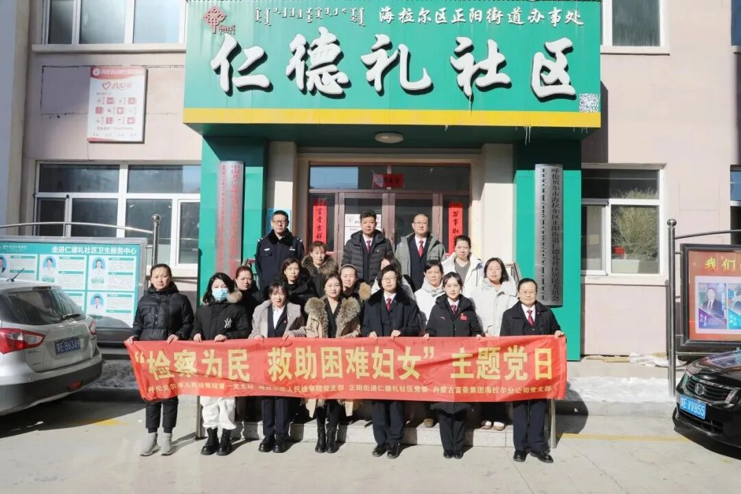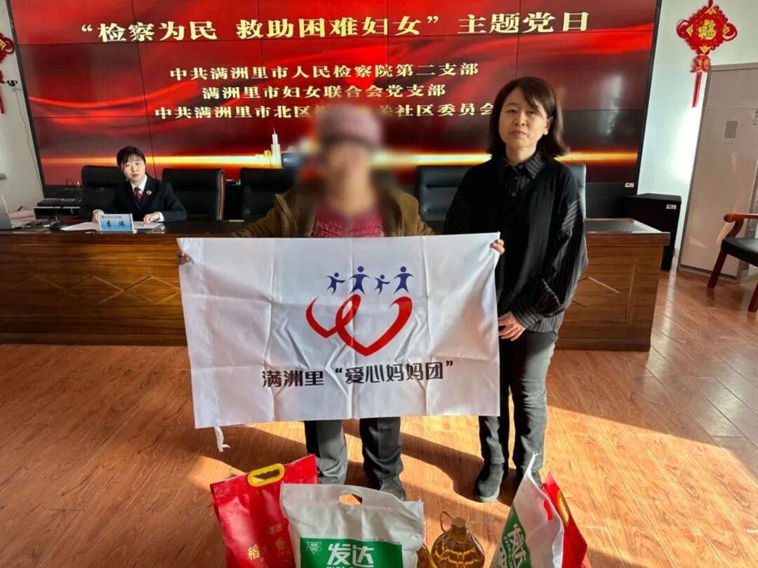 呼伦贝尔市检察院为深入学习贯彻落实《中华人民共和国妇女权益保障法》,持续开展“关注困难妇女群体,加强专项司法救助”活动,进一步深化“检察+企业+N”司法救助工作模式,充分发挥检察机关与妇联组织职能优势,推动党建与业务深度融合,多维度全方位维护困难妇女合法权益,2月29日至3月8日,组织海拉尔区检察院、鄂温克旗检察院、满洲里市检察院、阿荣旗检察院党支部,联合当地妇联组织、爱心企业、被救助困难妇女所在社区党支部前往被救助人家中及所在社区开展“检察为民 救助困难妇女”主题党日活动。