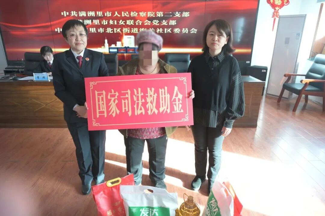 3月1日,满洲里市检察院第二党支部与满洲里市妇女联合会党支部携手走进满洲里市北区街道办事处海关社区、富华社区、文明社区开展“检察为民 救助困难妇女”主题党日活动,同时将司法救助金送到被救助人刘某某的手中,为这个困苦的家庭注入希望与信心。