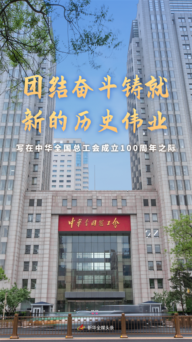 今年是中华全国总工会成立100周年。百年来,在中国共产党领导下,中国工会组织动员亿万职工群众团结拼搏、建功立业,为争取民族独立、人民解放和实现国家富强、人民幸福贡献智慧和力量。