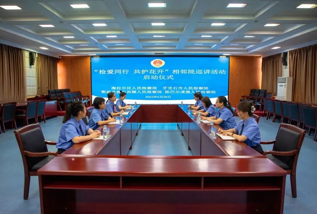 为进一步加强未检工作跨区域融合发展,汇聚未成年人保护合力。6月26日上午,海拉尔区人民检察院、牙克石市人民检察院、鄂温克旗人民检察院、陈巴尔虎旗人民检察院举行“检爱同行,共护花开”相邻院巡讲活动启动仪式,四地未检相关负责同志参加。
