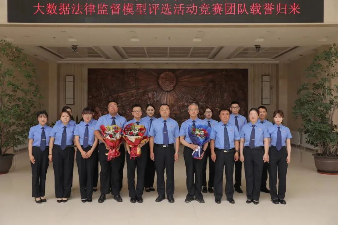 6月28日下午,呼伦贝尔市检察院第一时间为返程的各模型汇报团队举行热烈的欢迎仪式,市检察院党组成员、副检察长黄庆生,二级高级检察官毛云恒对由市检察院副检察长巴瑞明带队的模型汇报团队取得的成绩表示祝贺。