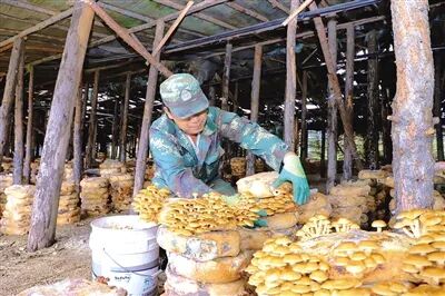 在内蒙古森工集团阿里河森工公司齐奇岭林场职工汤义家的滑子菇栽植大棚,一团团、一簇簇鲜嫩的滑子菇长势喜人,汤义正和工友忙碌地采摘成熟的滑子菇进行晾晒。他说,经过多年的发展,齐奇岭林场已成为 远近闻名的食用菌之乡,林场职工群众年培植量达600万袋以上,特别是今年已突破800万袋,培植户平均年增收7万元至8万元。