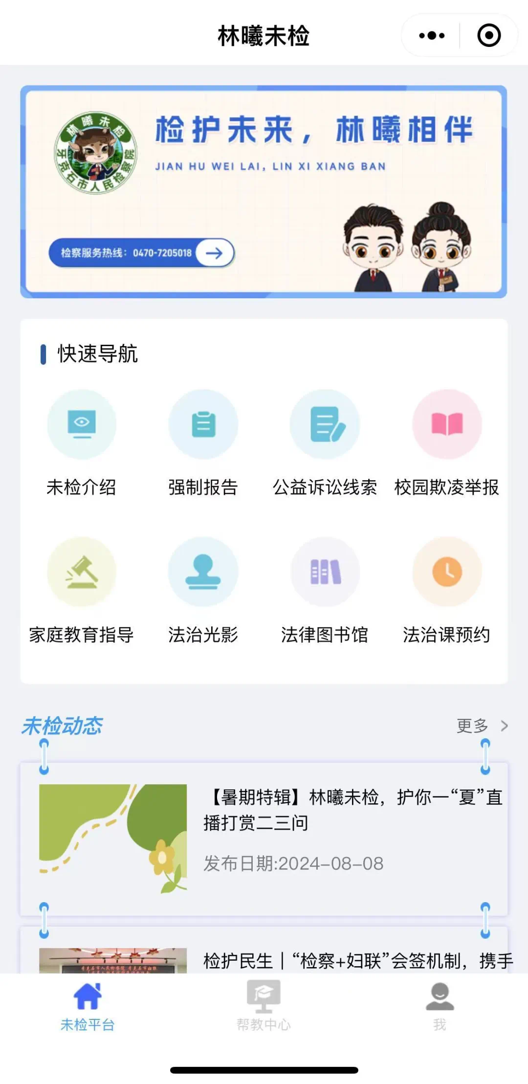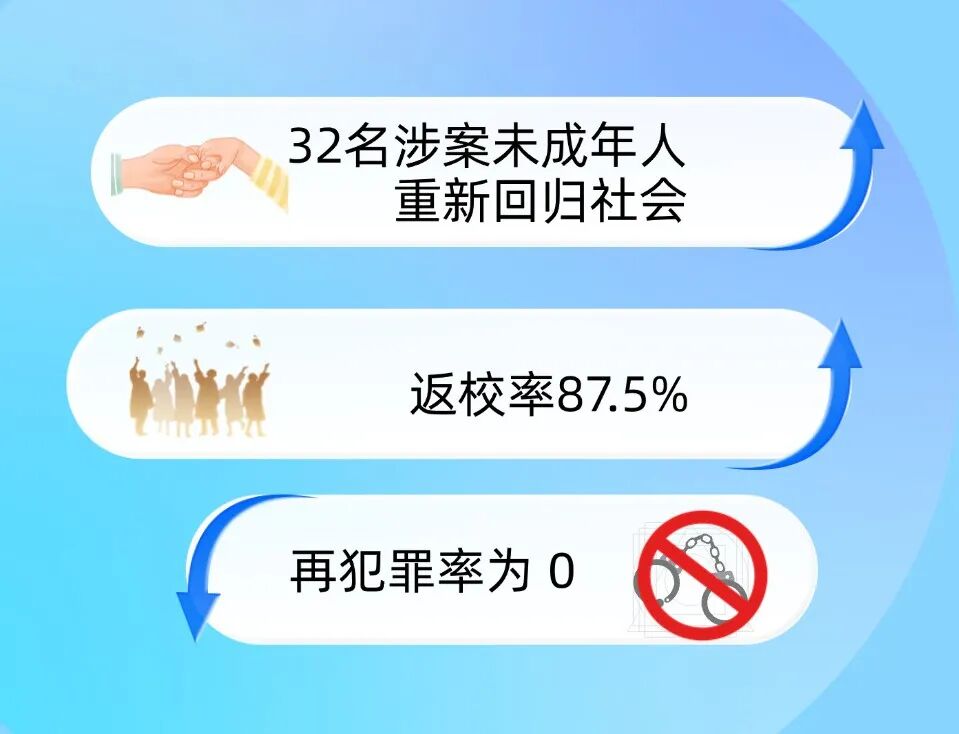 在呼伦贝尔市首创“科学化社会调查+线上远程帮教+家庭教育指导”三位一体的立体化帮教形式,依托“林曦未检”小程序线上帮教平台,制定个性化的帮教方案,实现一对一精准帮教,已成功帮助32名涉案未成年人重新回归社会,帮教后返校率高达87.5%,且再犯罪率为0。
