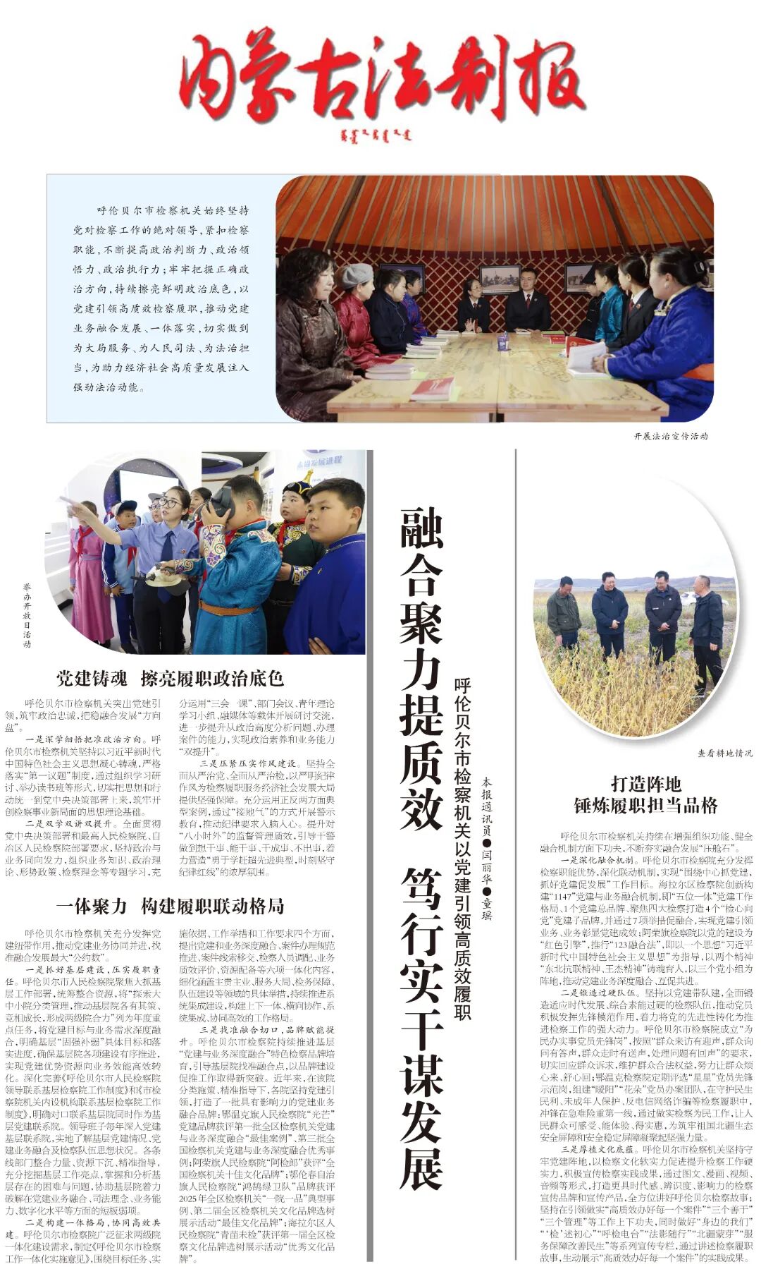 呼伦贝尔市检察机关突出党建引领,筑牢政治忠诚,把稳融合发展“方向盘”。
