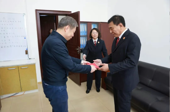刘喆副检察长一行专程深入根河市检察院调研走访。2024年岁末年初,自治区检察院李永君检察长在走访慰问时来到根河市检察院,临时在食堂组织召开座谈会与基层检察人员交流谈心,并指示要“将温暖送到最寒冷的地方”,此后一直记挂着根河市检察院,在教育培训、经费保障等方面上给予大力帮扶。一年来,根河市检察院检察人员素质逐步提升,硬件设施明显改善,完成了楼宇外管网、墙体外立面、综合功能会议室等设施的建设及完善。