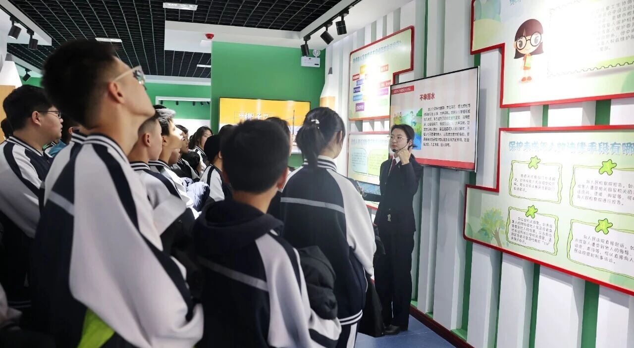 研学活动中,学生们在检察官的带领下,有序参观基地各功能展区。图文并茂的法律知识展板、生动形象的案例模型、互动式的法治体验设备,让抽象的法律条文变得直观易懂。检察官结合初中生的生活实际与认知特点,以“身边事”讲“法中理”,围绕与未成年人息息相关的核心法律,重点解读青少年权益保护、行为规范等内容。