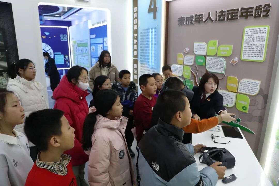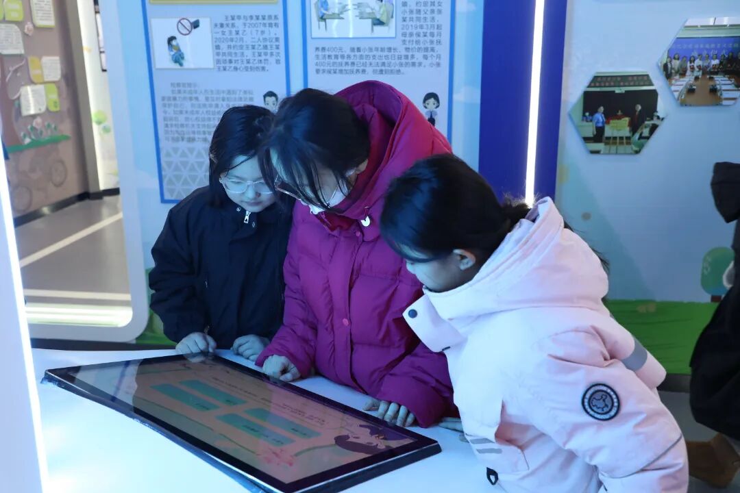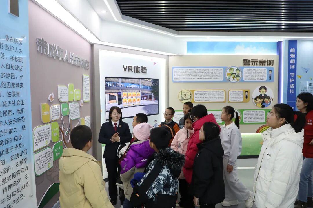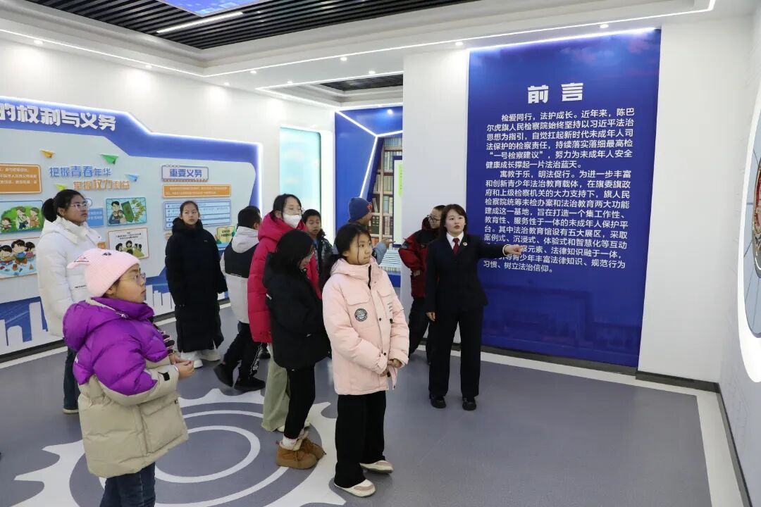 在未成年人检察工作人员的引导和讲解下,孩子们有序参观了陈巴尔虎旗检察院法治教育基地的各主题展区。展厅内丰富的图文案例、互动式法治教育装置、模拟场景以及多媒体演绎,将抽象的法律条文转化为直观、可感的知识。未检工作人员结合未成年人的身心特点,用浅显易懂的语言,重点讲解了预防校园欺凌、防范网络风险、加强自我保护等与孩子们生活学习息息相关的法律知识和安全常识。参观过程中,孩子们积极提问,踊跃参与互动体验,在沉浸式的学习氛围中增强了法治观念和自我保护意识。此次活动是推动未成年人保护工作的务实举措,也是落实“把爱带回家”关爱服务、延伸未检工作触角的有效实践。通过检察机关与妇联联动,整合资源,形成了保护合力,共同为未成年人营造了安全、健康、温暖的成长环境。